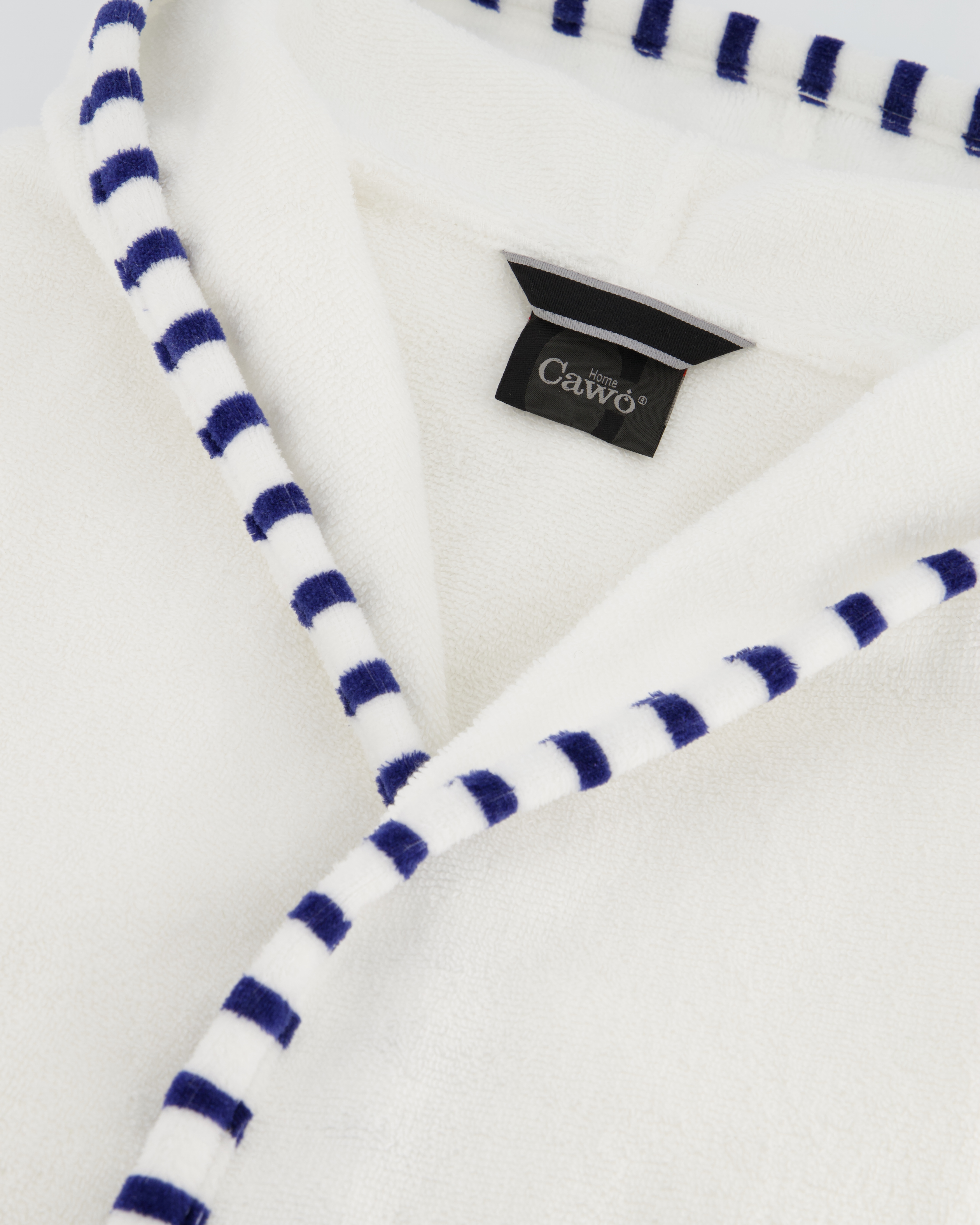 Cawö Bademantel Breton 848 für Damen – aus reiner Baumwolle, mit flauschig eingewebtem Ringel-Design, langlebig, pflegeleicht und stilvoll – für entspannte Wohlfühlmomente.